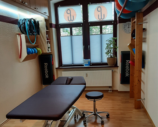In diesem Raum finden Einzelbehandlungen mit Kleingeräten oder am Seilzug statt.