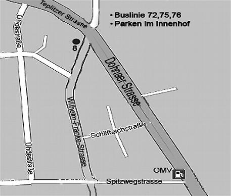 Linie 75 hält direkt vor der Praxis. Haltestelle "Dohnaer Strasse".